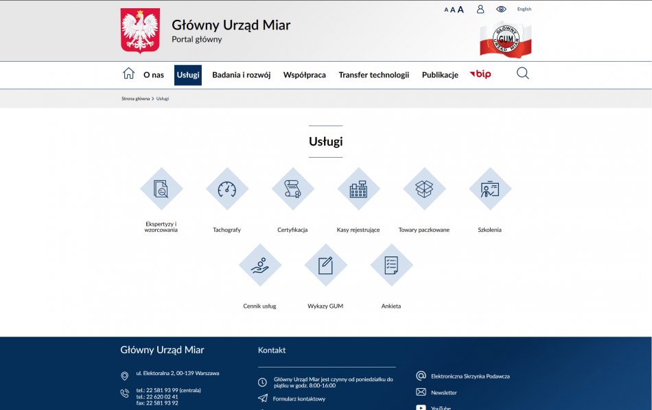 Platforma Głównego Urzędu Miar składa się z kilkunastu serwisów internetowych: