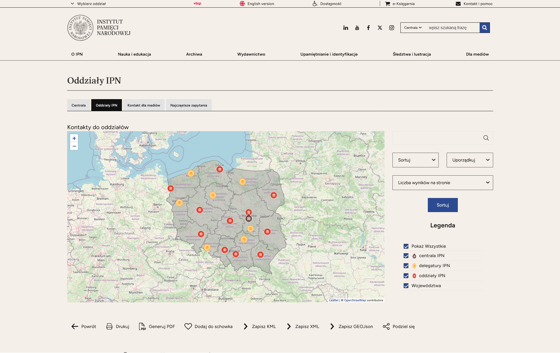 Moduł Mapy odpowiada za projekcję map historycznych, miejsc pamięci, w sumie prezentuje ponad 100 000 rekordów.
