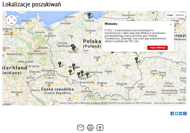 Serwis Poszukiwania dzięki użytym modułom, takim jak: Bazy danych i Formularze oraz  Mapy prezentuje miejsca poszukiwań wzbogacona w opisy zbrodni oraz galerie zdjęciowe.