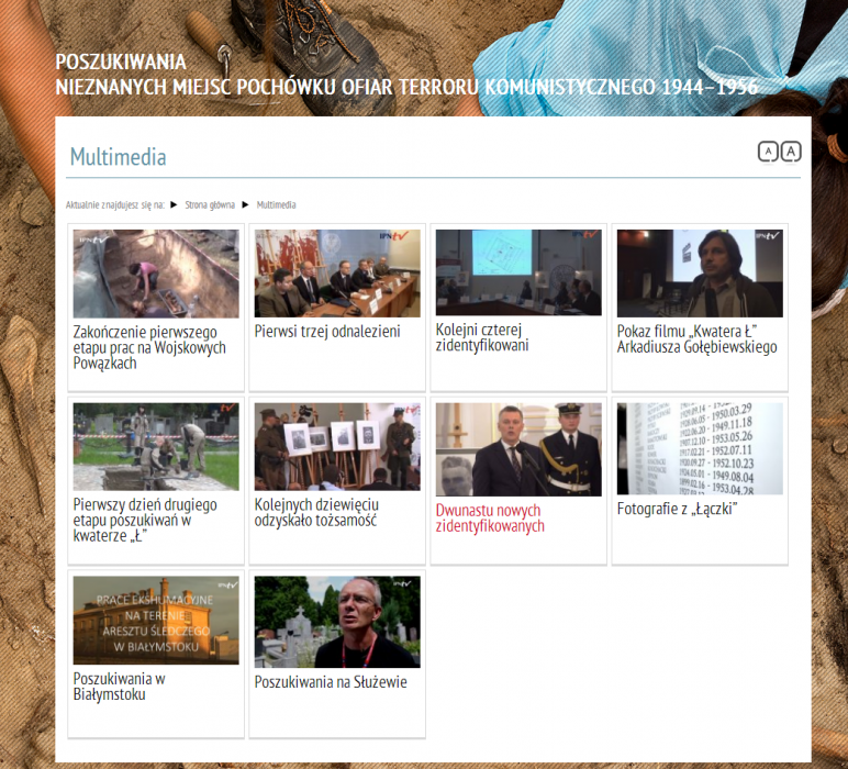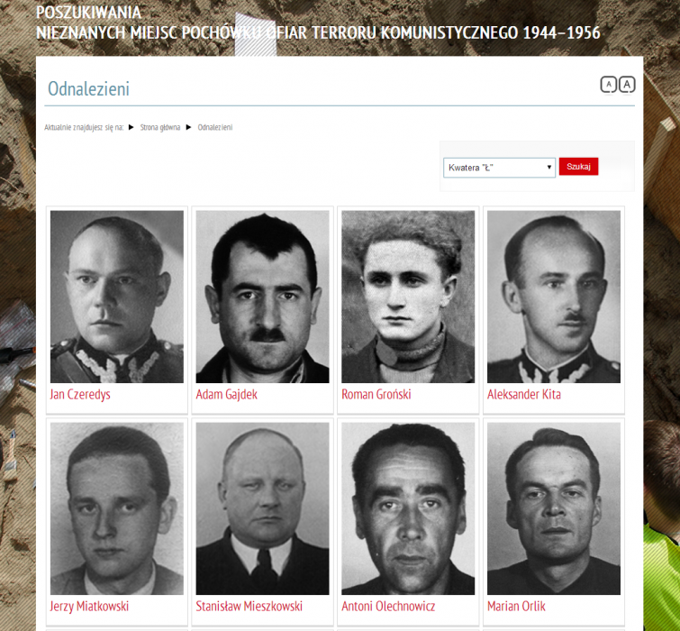 Serwis dotyczy projektu poszukiwań miejsc pochówku i identyfikacji ofiar terroru komunistycznego 1944-56.